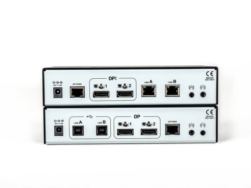 LV5000桌面工作站用于连接用户端的键盘、鼠标、显示器(单/双DP)、音频和麦克风供用户进行操作访问。接收端和发送端设备之间通过单/两根网线连接,最大可以支持150米(1000英尺),具备本地显示器口,最大分辨率支持1920*1200,支持USB透传。