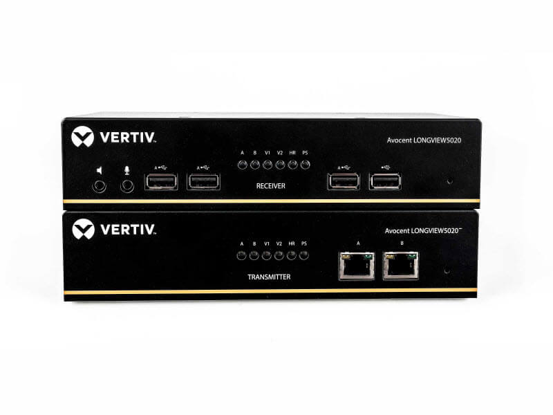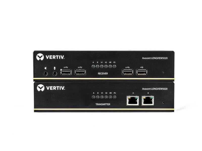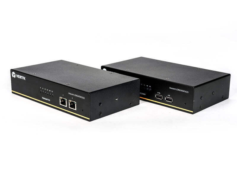 Vertiv Avocent LV5000桌面工作站用于连接用户端的键盘、鼠标、显示器(单/双DP)、音频和麦克风供用户进行操作访问。接收端和发送端设备之间通过单/两根网线连接,最大可以支持150米(1000英尺),具备本地显示器口,最大分辨率支持1920*1200,支持USB透传。