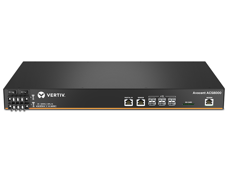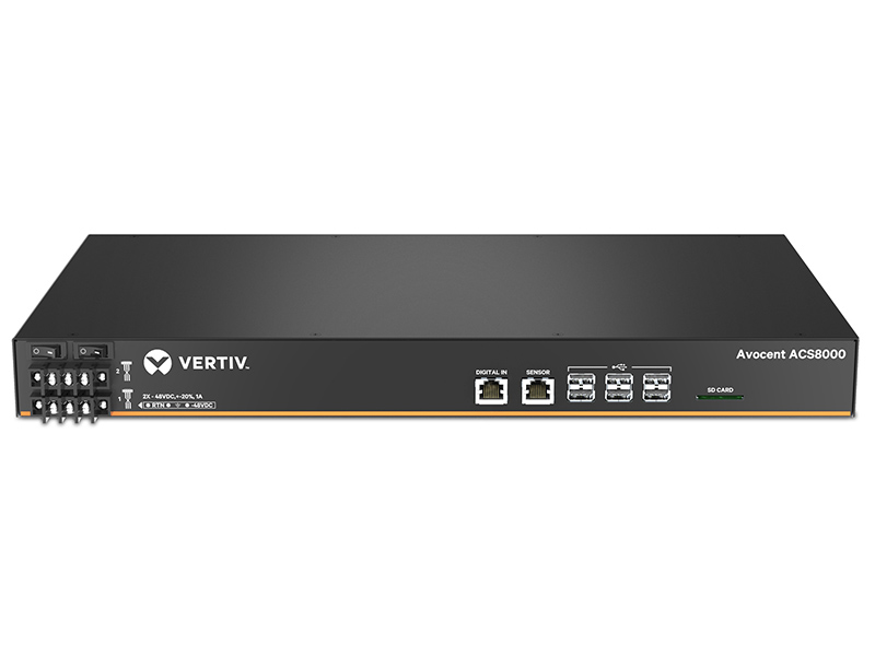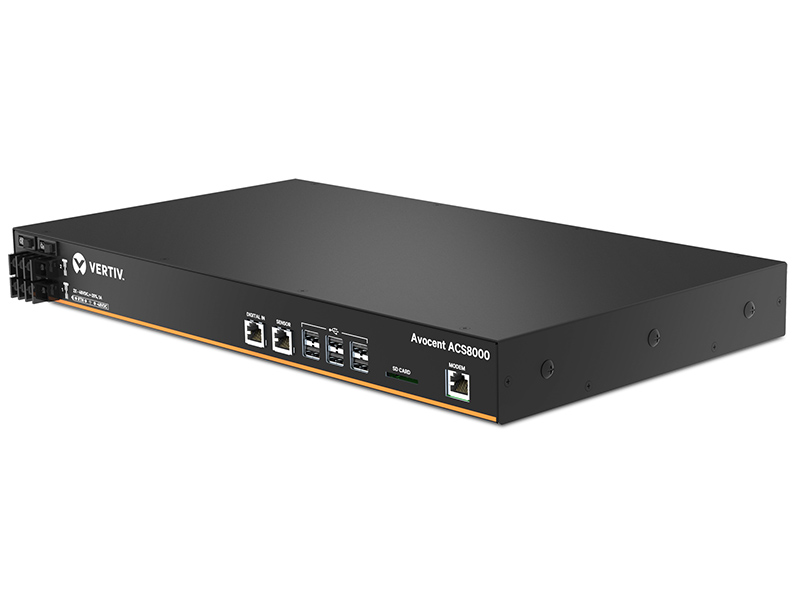 Avocent ACS 8000 系列高级控制台服务器继续书写了长盛不衰的故事,通过新型、全面的创新平台,融合如千兆光纤、USB 端口和传感器等新连接 特性。为 IT 专业人士和网络运营中心 (NOC) 人员提供从世界任何地点进行安 全、远程的数据中心和 IT 资产带外管理能力。基于双核 ARM 处理器架构与扩 展内存,优化的 Linux 运行系统和 DSView™ 管理软件,Vertiv Avocent® ACS 8000提供更佳性能、安全性和可靠性的带外管理解决方案