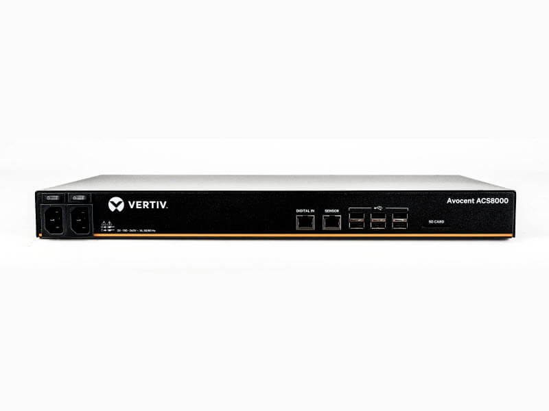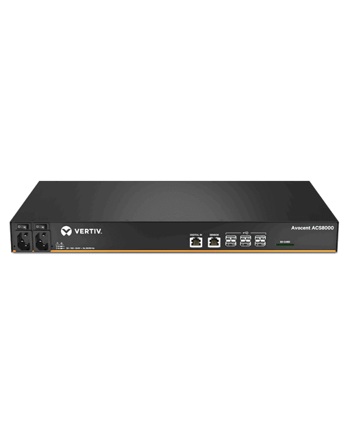 Avocent ACS 8000 系列高级控制台服务器继续书写了长盛不衰的故事,通过新型、全面的创新平台,融合如千兆光纤、USB 端口和传感器等新连接 特性。为 IT 专业人士和网络运营中心 (NOC) 人员提供从世界任何地点进行安 全、远程的数据中心和 IT 资产带外管理能力。基于双核 ARM 处理器架构与扩 展内存,优化的 Linux 运行系统和 DSView™ 管理软件,Vertiv Avocent® ACS 8000提供更佳性能、安全性和可靠性的带外管理解决方案