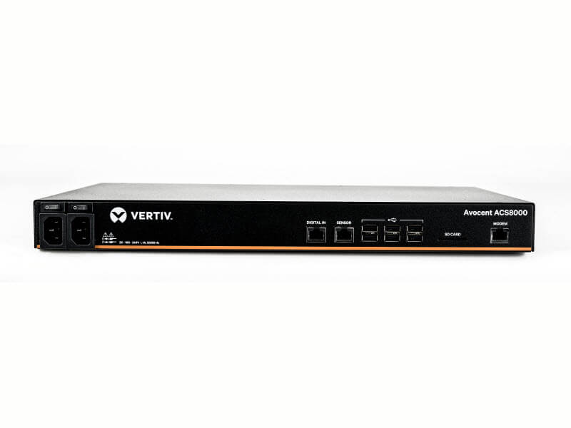 Avocent ACS 8000 系列高级控制台服务器继续书写了长盛不衰的故事,通过新型、全面的创新平台,融合如千兆光纤、USB 端口和传感器等新连接 特性。为 IT 专业人士和网络运营中心 (NOC) 人员提供从世界任何地点进行安 全、远程的数据中心和 IT 资产带外管理能力。基于双核 ARM 处理器架构与扩 展内存,优化的 Linux 运行系统和 DSView™ 管理软件,Vertiv Avocent® ACS 8000提供更佳性能、安全性和可靠性的带外管理解决方案