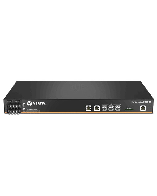 Avocent ACS 8000 系列高级控制台服务器继续书写了长盛不衰的故事,通过新型、全面的创新平台,融合如千兆光纤、USB 端口和传感器等新连接 特性。为 IT 专业人士和网络运营中心 (NOC) 人员提供从世界任何地点进行安 全、远程的数据中心和 IT 资产带外管理能力。基于双核 ARM 处理器架构与扩 展内存,优化的 Linux 运行系统和 DSView™ 管理软件,Vertiv Avocent® ACS 8000提供更佳性能、安全性和可靠性的带外管理解决方案