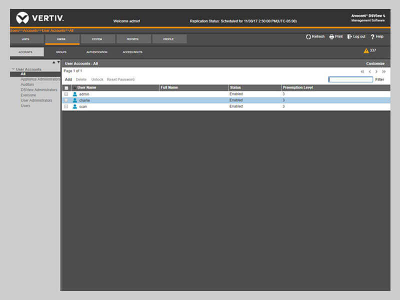 Vertiv Avocent DSView™ 4 管理软件为数据中心提供了一个能够对所有 IT 资产(包括虚拟和刀片服务器、VMware及服务处理器)进行安全、集中化管理的解决方案。